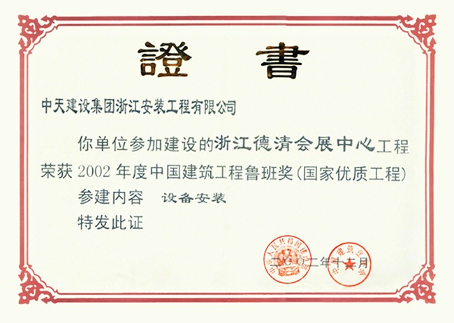 浙江省德清會展中心 2002年度中國建設工程魯班獎