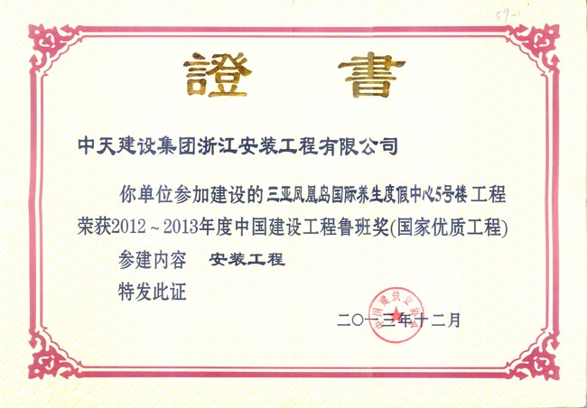 三亞鳳凰島國際養生度假中心5#樓工程 中國建設工程魯班獎