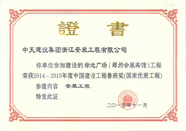 綠地廣場(鄭州會展賓館) 2014-2015年度中國建設工程魯班獎