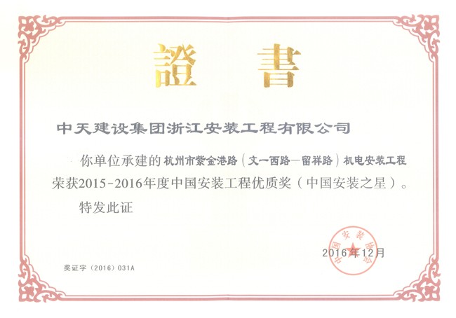 中國安裝工程優質獎項目12-杭州紫金港路項目