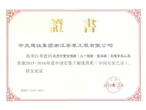 杭州地鐵1號線綜合監控系統集成工程-2013~2014年度中國安裝工程優質獎(中國安裝之星)